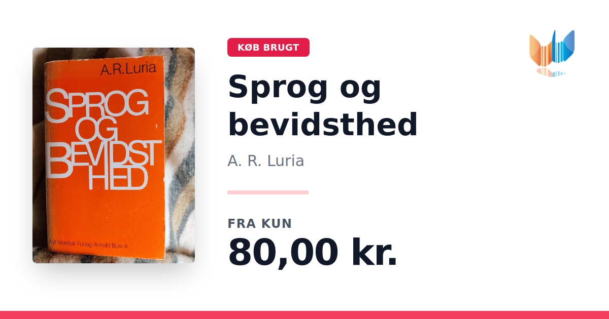 Lige nu kan du købe "Sprog og bevidsthed" af A. R. Luria til kun 80,00 kr. Bogen du ser her er brugt, og i god stand. Vi har i øjeblikket kun et enkelt eksemplar til salg af "Sprog og bevidsthed", så slå til mens du kan!