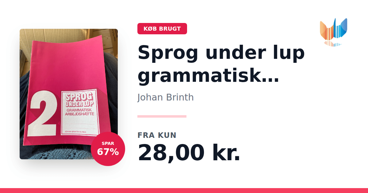 Lige nu kan du købe "Sprog under lup grammatisk arbejdshæfte" af Johan Brinth til kun 28,00 kr. Du sparer hele 67% af nyprisen! Bogen du ser her er brugt, og i god stand. Vi har i øjeblikket kun et enkelt eksemplar til salg af "Sprog under lup grammatisk arbejdshæfte", så slå til mens du kan!