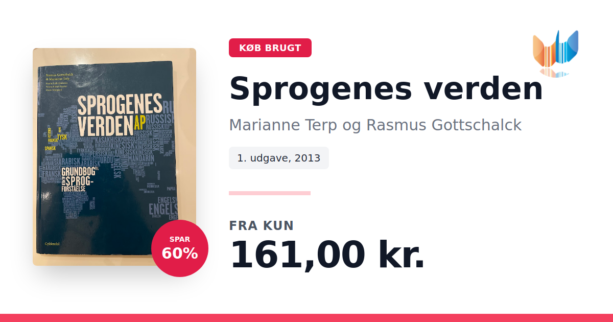 Lige nu kan du købe "Sprogenes verden" af Marianne Terp og Rasmus Gottschalck til kun 161,00 kr. Du sparer hele 60% af nyprisen! Bogen du ser her er brugt, og i god stand. Vi har i øjeblikket kun et enkelt eksemplar til salg af "Sprogenes verden", så slå til mens du kan!