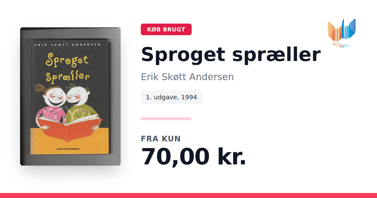 Lige nu kan du købe "Sproget spræller" af Erik Skøtt Andersen til kun 70,00 kr. Bogen du ser her er brugt, og i perfekt stand. Vi har i øjeblikket kun et enkelt eksemplar til salg af "Sproget spræller", så slå til mens du kan!