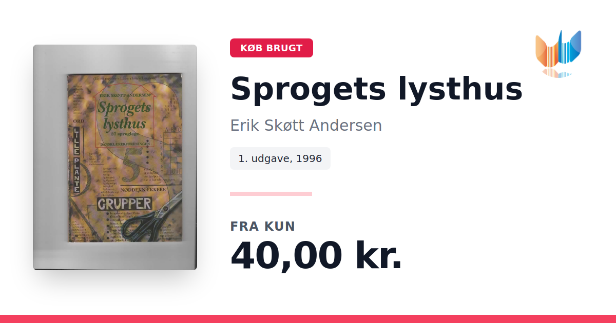 Lige nu kan du købe "Sprogets lysthus" af Erik Skøtt Andersen til kun 40,00 kr. Bogen du ser her er brugt, og i perfekt stand. Vi har i øjeblikket kun et enkelt eksemplar til salg af "Sprogets lysthus", så slå til mens du kan!