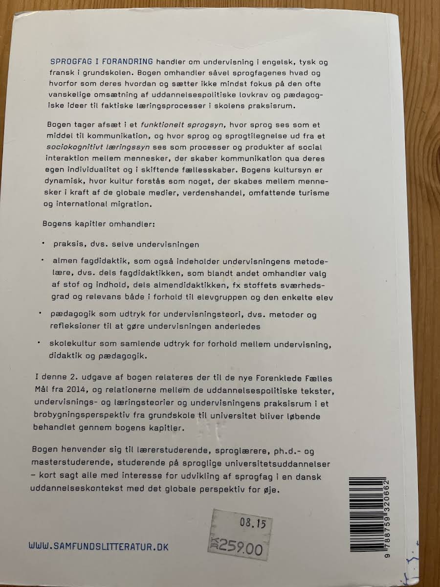 Sprogfag i forandring er en opdateret og central udgave, der undersøger, hvordan undervisningen i engelsk, tysk og fransk forankres i grundskolens hverdag. Med et funktionelt sprogsyn fremhæver bogen sprog som et virkningsfuldt redskab for kommunikation, hvor sprogtilegnelse opfattes som en dynamisk og social proces. Her skabes et spændingsfelt mellem uddannelsespolitiske intentioner og de konkrete læringsmiljøer, hvor teori omsættes til praksis. Bogen udforsker de didaktiske og pædagogiske metoder, der giver rammen om valget af indhold og aktiviteter, som både tager højde for den enkelte elev og den samlede elevgruppe. Med et dynamisk kultursyn, der afspejler globaliseringens og migrationens virkning, skabes en dybdegående analyse af samspillet mellem læringsteori og skolens praksis. Med udgangspunkt i Fælles Mål 2009 præsenteres en nuanceret og reflekteret tilgang til, hvordan sprogfagene kan udvikles og tilpasses fremtidens uddannelsesbehov.