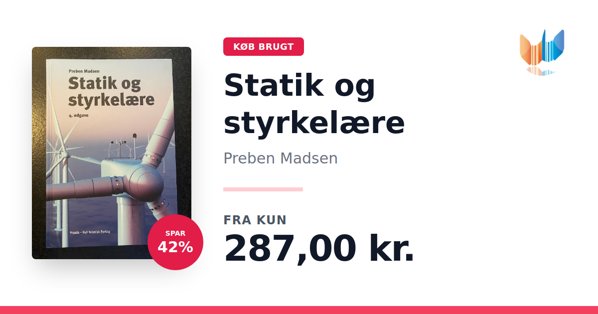 Statik og styrkelære. er nu præsenteret i sin fjerde, opdaterede udgave, hvor Preben Madsen kombinerer et solidt teoretisk fundament med praktiske eksempler, som understøtter forståelsen af statikkens og styrkelærens principper. Bogen henvender sig til studerende på tekniske uddannelser og dækker emner, der er essentielle for at anvende de grundlæggende elementer inden for fagområdet. Med en klar struktur, der er inddelt i otte kapitler – herunder et afsluttende kapitel med øvelsesopgaver – er bogen moderniseret for at følge med den nyeste teknologiske og videnskabelige udvikling. Udover smårettelser af sproget og indholdet, findes der en overskuelig oversigt over de mest benyttede symbolforkortelser på indersiden af omslaget, så de altid er let tilgængelige for læseren.