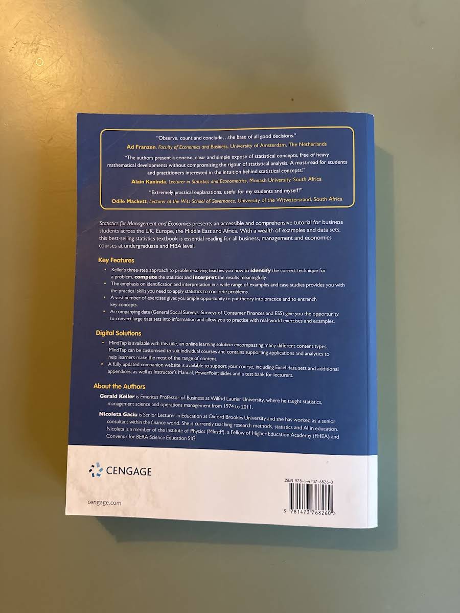 • Statistics for Management and Economics, Gerald Keller, Nicoleta Gaciu, 9781473768260