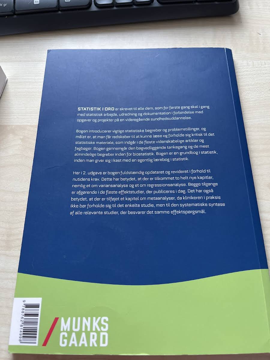 "Statistik i ord" er en klar og præcis introduktion til de grundlæggende statistiske begreber og problemstillinger, der spiller en central rolle i moderne videnskabelig kommunikation. Bogen udstyrer den studerende med værktøjer til at læse og vurdere statistisk materiale kritisk, og den forklarer på en lettilgængelig måde den bagvedliggende tankegang, der er nødvendig for at forstå biostatistik. Med sit simple sprog og velvalgte eksempler er "Statistik i ord" et oplagt udgangspunkt for alle, der for første gang skal beskæftige sig med statistisk udredning og dokumentation – særligt inden for sundhedsuddannelser. Bogen tilrettelægger en læringsrejse, hvor de mest essentielle statistiske metoder og overvejelser bliver bragt i spil, så læseren på en systematisk måde kan tilegne sig et solidt fundament til videre studier og praksis.
