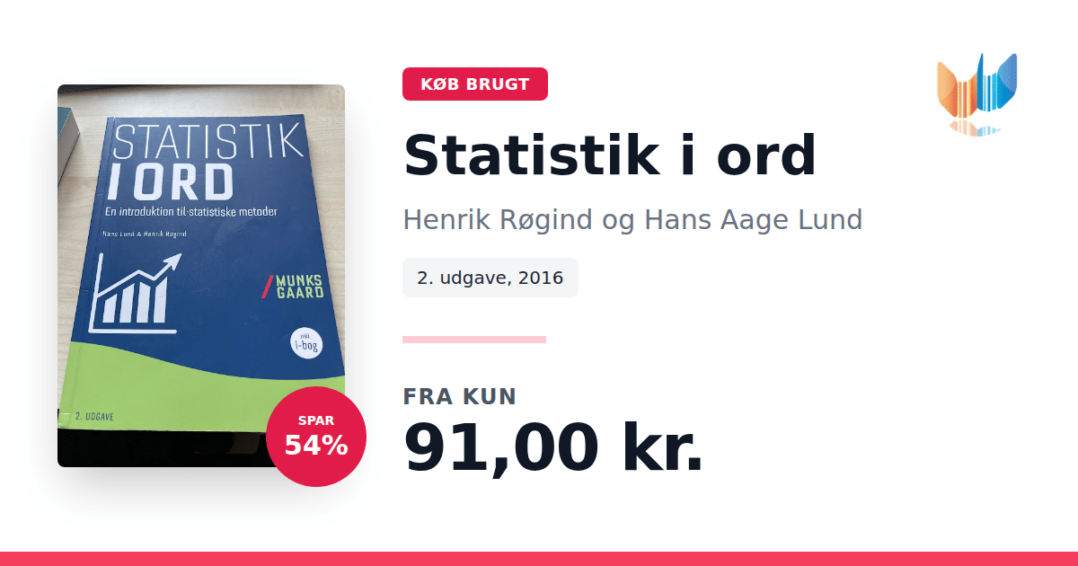 Lige nu kan du købe "Statistik i ord" af Henrik Røgind og Hans Aage Lund til kun 91,00 kr. Du sparer hele 54% af nyprisen! Bogen du ser her er brugt, og i god stand. Vi har i øjeblikket 2 eksemplarer til salg af "Statistik i ord", så husk at se de forskellige udgaver.