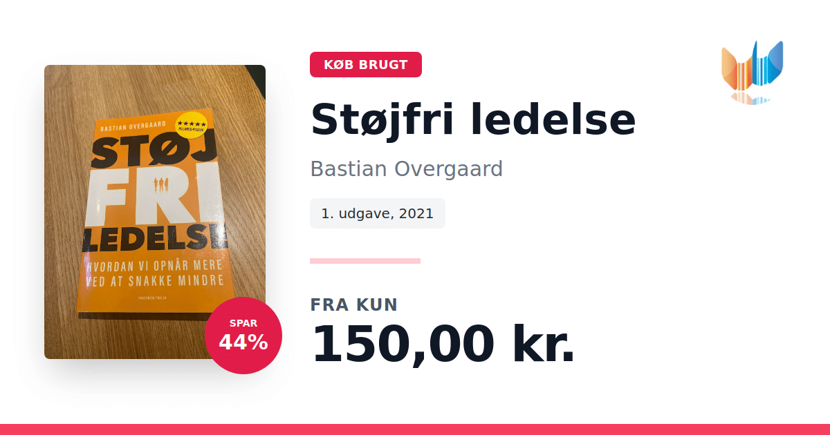 Lige nu kan du købe "Støjfri ledelse" af Bastian Overgaard til kun 150,00 kr. Du sparer hele 44% af nyprisen! Bogen du ser her er brugt, og i perfekt stand. Vi har i øjeblikket kun et enkelt eksemplar til salg af "Støjfri ledelse", så slå til mens du kan!