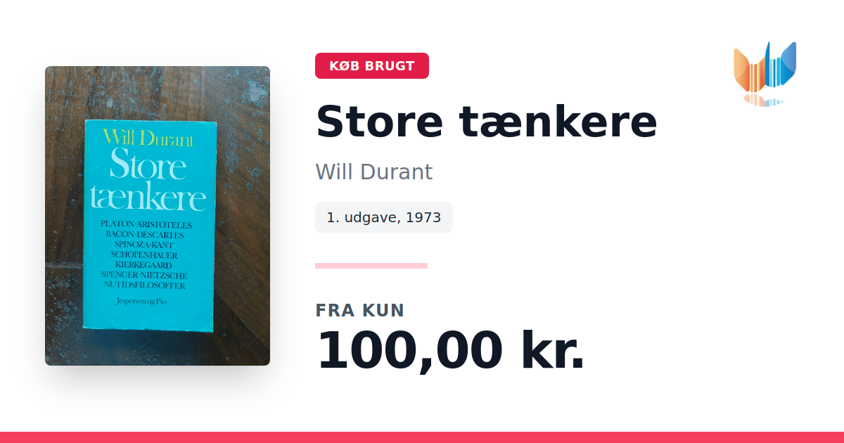 Lige nu kan du købe "Store tænkere" af Will Durant til kun 100,00 kr. Bogen du ser her er brugt, og i god stand. Vi har i øjeblikket kun et enkelt eksemplar til salg af "Store tænkere", så slå til mens du kan!