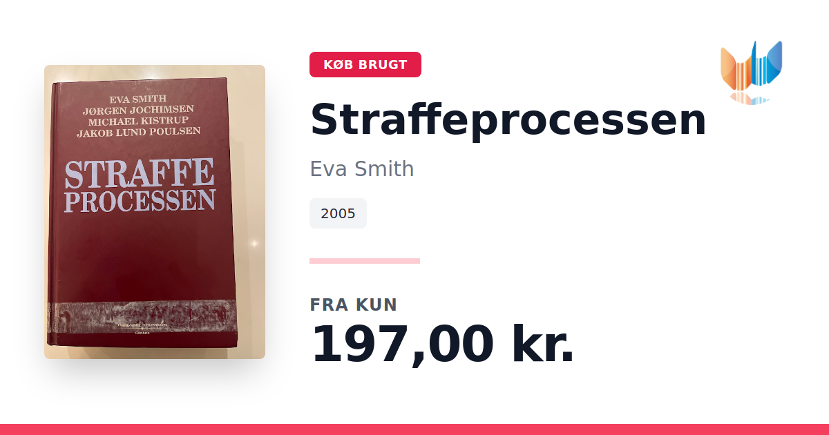 Lige nu kan du købe "Straffeprocessen" af Eva Smith til kun 197,00 kr. Bogen du ser her er brugt, og i god stand. Vi har i øjeblikket kun et enkelt eksemplar til salg af "Straffeprocessen", så slå til mens du kan!