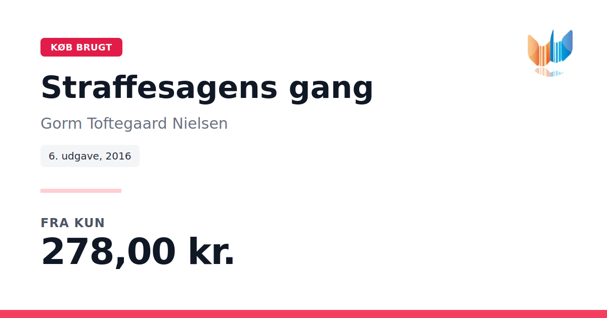 Lige nu kan du købe "Straffesagens gang" af Gorm Toftegaard Nielsen til kun 278,00 kr. Du sparer hele 18% af nyprisen! Bogen du ser her er brugt, og i perfekt stand. Vi har i øjeblikket 2 eksemplarer til salg af "Straffesagens gang", så husk at se de forskellige udgaver.