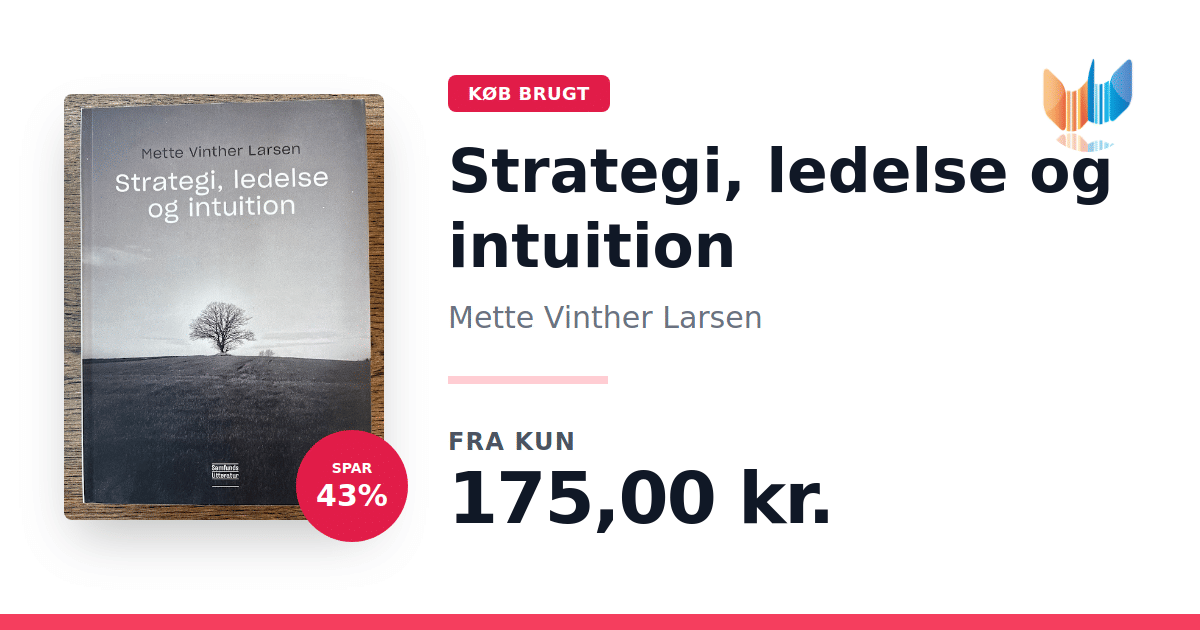Lige nu kan du købe "Strategi, ledelse og intuition" af Mette Vinther Larsen til kun 175,00 kr. Du sparer hele 43% af nyprisen! Bogen du ser her er brugt, og i god stand. Vi har i øjeblikket kun et enkelt eksemplar til salg af "Strategi, ledelse og intuition", så slå til mens du kan!