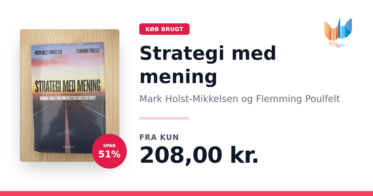 "Strategi med mening" udfordrer den traditionelle opfattelse af strategiarbejde ved at sætte fokus på, at en vellykket strategi skal inspirere og engagere alle niveauer i virksomheden. Med udgangspunkt i ny forskning og praktisk dokumenteret ledererfaring, giver bogen indsigt i, hvordan en strategi kan gøres både relevant og nødvendig – ikke blot for ledelsen, men for hele medarbejderstaben. Bogen præsenterer en række velbegrundede eksempler og konkretiserer, hvordan danske virksomheder kan omsætte strategiske idéer til målbare resultater. Ved at skabe en fælles forståelse og handlekraft blandt medarbejderne, viser forfatterne, hvordan man udnytter virksomhedens fulde potentiale og realiserer strategiske målsætninger med en ressourceeffektiv tilgang. "Strategi med mening" er et værdifuldt redskab for enhver leder og beslutningstager, der ønsker at sætte liv i strategien og opnå en målrettet forandring i organisationen. Med en balanceret kombination af teori og praksis tilbyder bogen inspiration til at gøre strategi til en meningsfuld, integreret del af virksomhedens kultur og udvikling.