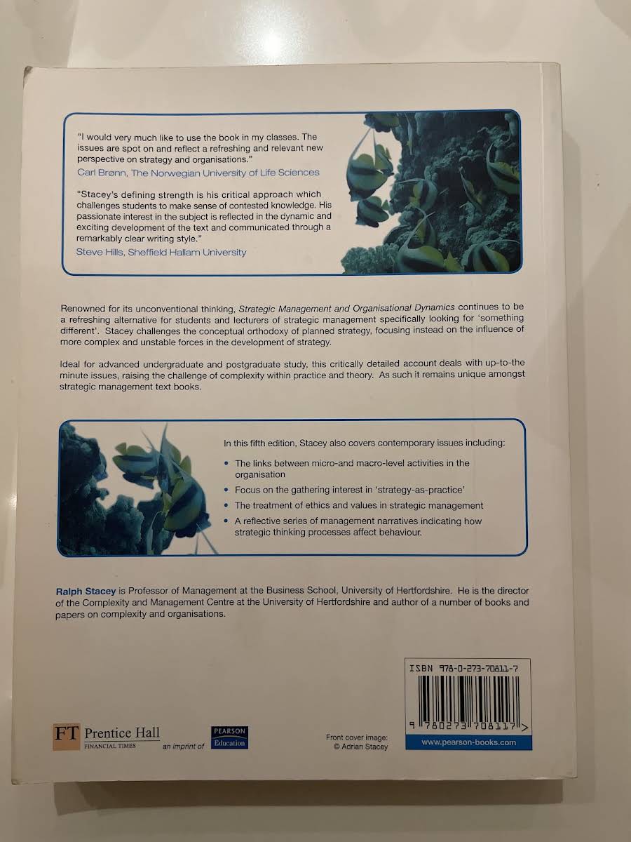 Strategic Management and Organisational Dynamics udfordrer den traditionelle opfattelse af, at organisationer kun kan trives i stabile, harmoniske og konsensuelle tilstande. Ralph D. Stacey præsenterer kompleksitetsteori som en ny ramme for at forstå organisationers indre dynamikker og de komplekse processer, der former strategiske beslutninger. På bogens 502 sider viser Stacey, hvordan indsigt i organisatorisk dynamik kan styrke strategisk ledelse. Han argumenterer for, at ledere i stedet for at søge fuld kontrol bør omfavne usikkerhed, emergente mønstre og uforudsigelige forandringer som fundament for innovation og bæredygtig udvikling.