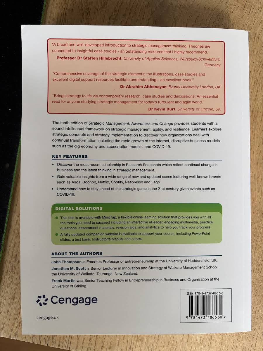 • Strategic Management Awareness and Change, John Thompson, Frank Martin, Jonathan Scott, 9781473786530