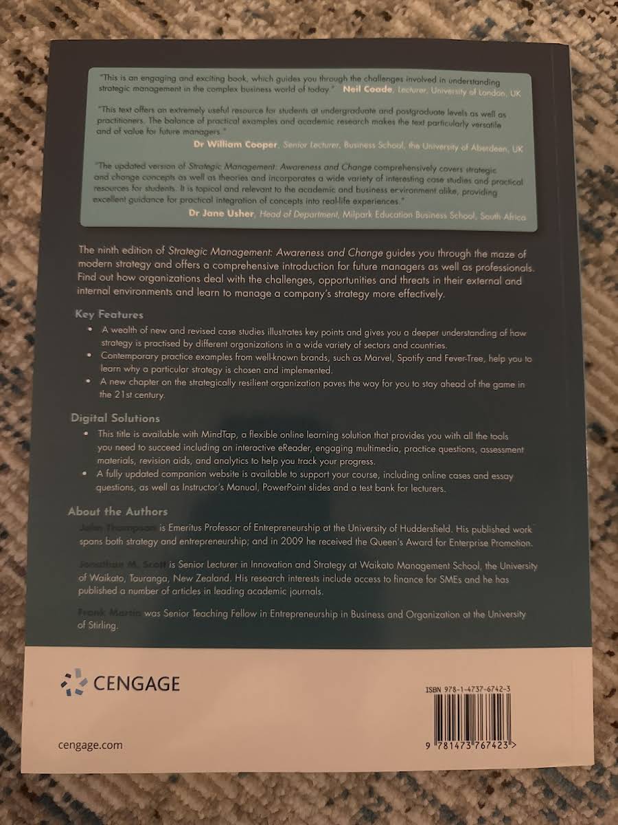 Den 9. udgave af Strategic Management: Awareness and Change giver de studerende og kommende ledere et solidt fundament i moderne strategitænkning. På tværs af 720 sider præsenteres såvel teoretiske modeller som praktiske tilgange, der klæder både erhvervsstuderende og professionelle på til at navigere i komplekse forretningsmiljøer. Bogen udforsker centrale strategibegreber og metoder til implementering, så læseren kan forstå og håndtere de ændringer, muligheder, trusler og udfordringer, som organisationer møder - både internt og eksternt. Med eksempler fra virkelighedens praksis illustreres, hvordan strategiske beslutninger træffes, og hvilke konsekvenser de har på tværs af forskellige brancher. Gennem cases og refleksionsopgaver styrkes evnen til kritisk analyse og problemløsning, ligesom læseren får indsigt i, hvordan man tilpasser strategiske tiltag i en omskiftelig verden. Denne udgave er uundværlig for alle, der ønsker at forstå strategisk ledelse i praksis og blive rustet til fremtidige ledelsesroller.