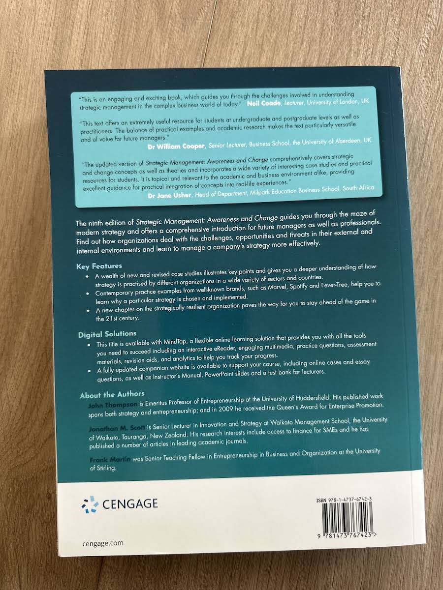 Den 9. udgave af Strategic Management: Awareness and Change giver de studerende og kommende ledere et solidt fundament i moderne strategitænkning. På tværs af 720 sider præsenteres såvel teoretiske modeller som praktiske tilgange, der klæder både erhvervsstuderende og professionelle på til at navigere i komplekse forretningsmiljøer. Bogen udforsker centrale strategibegreber og metoder til implementering, så læseren kan forstå og håndtere de ændringer, muligheder, trusler og udfordringer, som organisationer møder - både internt og eksternt. Med eksempler fra virkelighedens praksis illustreres, hvordan strategiske beslutninger træffes, og hvilke konsekvenser de har på tværs af forskellige brancher. Gennem cases og refleksionsopgaver styrkes evnen til kritisk analyse og problemløsning, ligesom læseren får indsigt i, hvordan man tilpasser strategiske tiltag i en omskiftelig verden. Denne udgave er uundværlig for alle, der ønsker at forstå strategisk ledelse i praksis og blive rustet til fremtidige ledelsesroller.