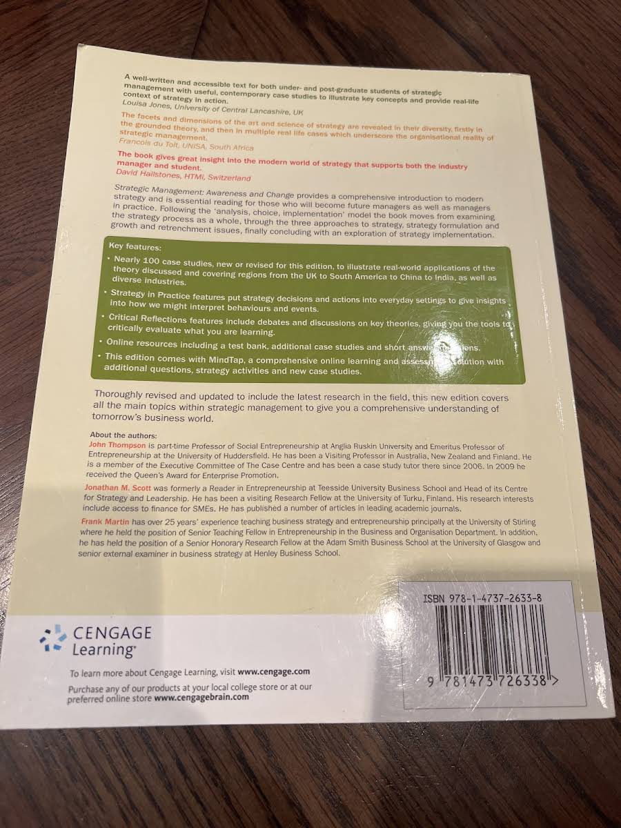 The eighth edition of Strategic Management offers a comprehensive introduction to modern strategy, thoroughly updated with the latest insights from the field. Meticulously revised to reflect current research and emerging practices, this edition guides students through the essential topics needed to navigate tomorrow’s dynamic business landscape. With its clear explanations and balanced approach to theory and application, this edition equips readers with the strategic frameworks crucial for effective decision-making and organizational success. Whether you are new to the subject or seeking to deepen your understanding, Strategic Management provides a solid foundation for mastering the complexities of today's competitive business world.