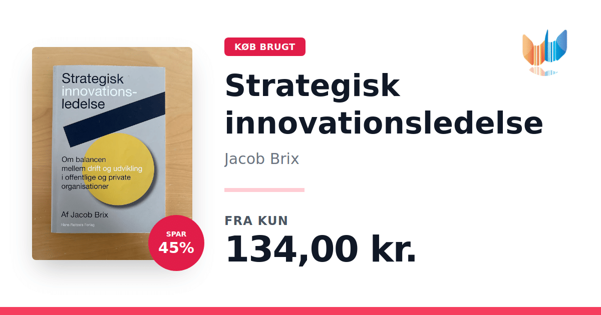 Lige nu kan du købe "Strategisk innovationsledelse" af Jacob Brix til kun 134,00 kr. Du sparer hele 45% af nyprisen! Bogen du ser her er brugt, og i perfekt stand. Vi har i øjeblikket kun et enkelt eksemplar til salg af "Strategisk innovationsledelse", så slå til mens du kan!