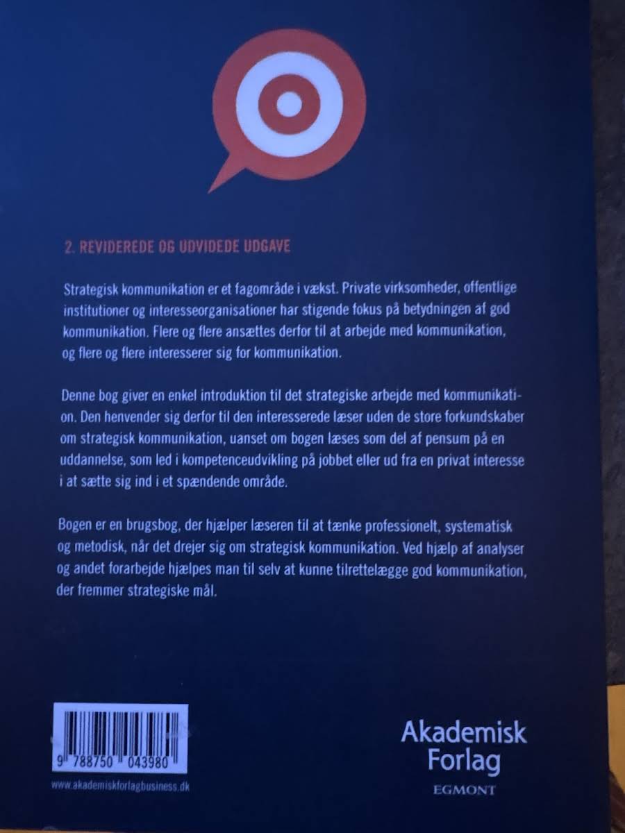 "Strategisk kommunikation" giver en klar og praktisk introduktion til, hvordan man arbejder målrettet og metodisk med kommunikation. Bogen viser, hvordan både private virksomheder og offentlige institutioner kan drage fordel af strategisk planlægning og analyser for at opnå deres mål. Med konkrete eksempler og redskaber bliver læseren rustet til selv at udvikle kommunikationsindsatser, der understøtter de strategiske ambitioner. Denne håndbog henvender sig både til studerende og praktikere, der ønsker at styrke deres faglige tilgang til kommunikation. Med en systematisk og praksisnær metode inviteres læseren til at reflektere over, hvordan strategisk kommunikation kan omsættes til virkelige resultater. Gennem et analytisk og anvendelsesorienteret perspektiv tilbyder bogen et solidt fundament for fremtidens kommunikationsarbejde.