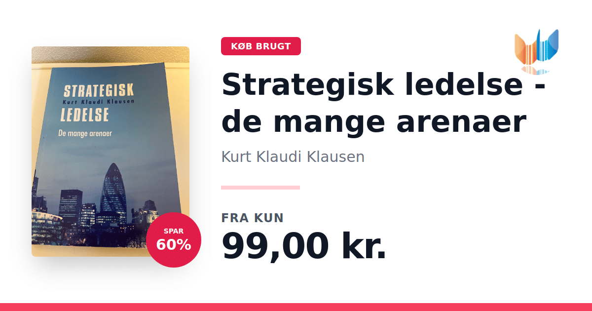 Lige nu kan du købe "Strategisk ledelse - de mange arenaer" af Kurt Klaudi Klausen til kun 99,00 kr. Du sparer hele 60% af nyprisen! Bogen du ser her er brugt, og i perfekt stand. Vi har i øjeblikket 5 eksemplarer til salg af "Strategisk ledelse - de mange arenaer", så husk at se de forskellige udgaver.