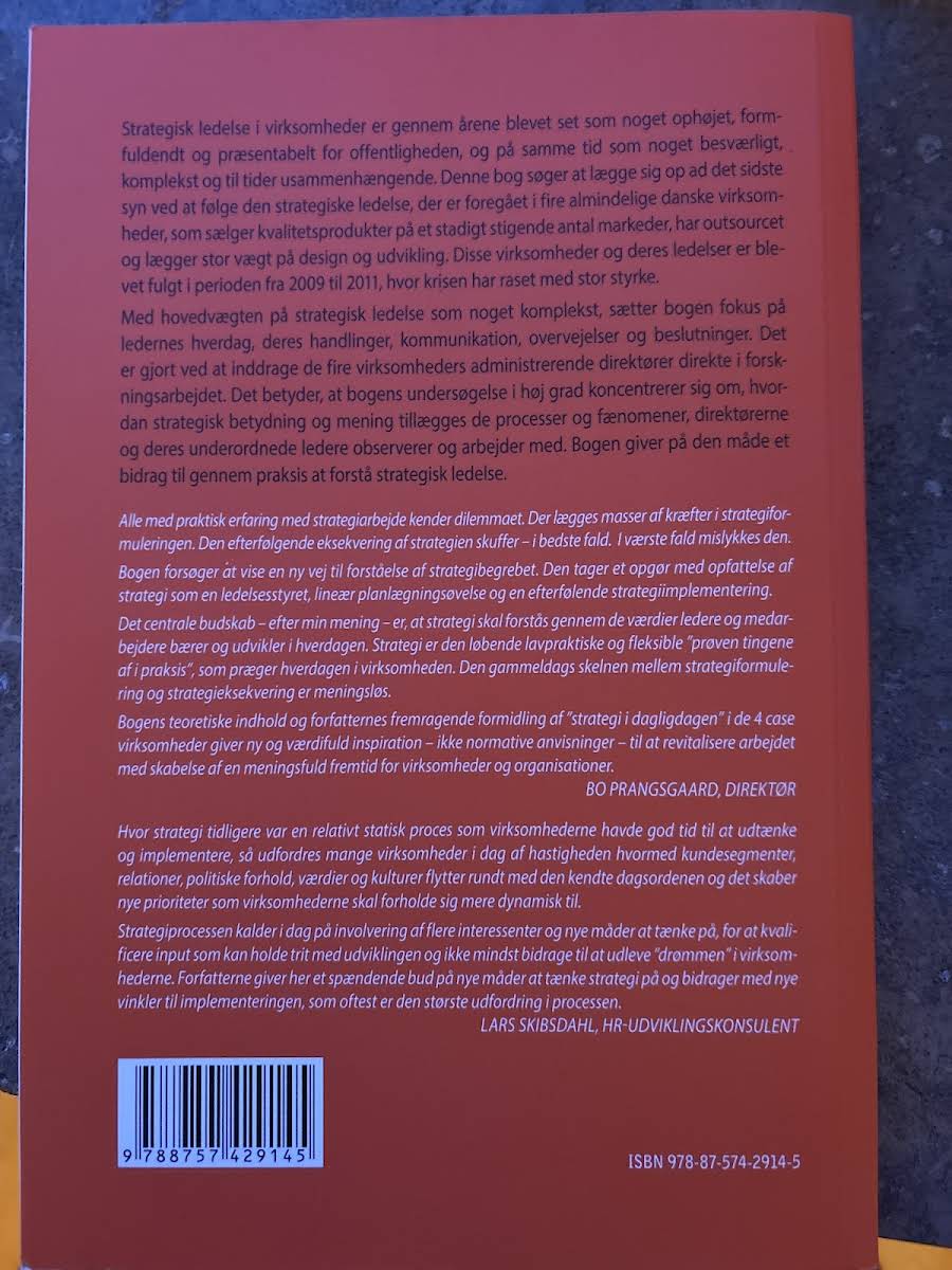 "Strategisk ledelse som meningsskabende processer" byder på en nuanceret og praktisk tilgang til, hvordan strategier formes og realiseres i erhvervslivet. Med udgangspunkt i fire danske virksomheder, følges de administrerende direktører og deres ledelsesteams dagligdag over flere år – også under kriseperioder – hvilket giver unikke indsigter i de beslutningsprocesser og den kommunikation, der ligger til grund for strategisk udvikling. Bogen udfordrer den traditionelle opfattelse af strategi som en lineær og fast plan ved at fremhæve, hvordan ledelse i praksis handler om at forhandle, skabe og genfortolke mening i lyset af både interne og eksterne forandringer. Rasmussen og Larsen illustrerer, hvordan verdier og relationer i hverdagen bidrager til en dynamisk og fleksibel strategisk proces, hvor handlingskraft og pragmatik går hånd i hånd. Med en pædagogisk og indsigtfuld fremstilling tilbyder "Strategisk ledelse som meningsskabende processer" et væsentligt bidrag til forståelsen af moderne ledelsesstrategier, og hvordan disse implementeres i praksis. Denne fagligt forankrede fortælling appellerer til alle, der ønsker at få et realistisk indblik i de mange facetter af strategisk ledelse.