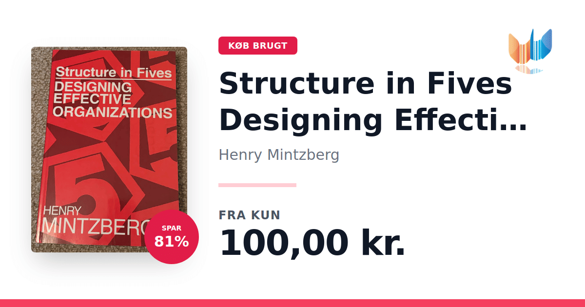 Lige nu kan du købe "Structure in Fives Designing Effective Organizations" af Henry Mintzberg til kun 100,00 kr. Du sparer hele 81% af nyprisen! Bogen du ser her er brugt, og i perfekt stand. Vi har i øjeblikket 2 eksemplarer til salg af "Structure in Fives Designing Effective Organizations", så husk at se de forskellige udgaver.