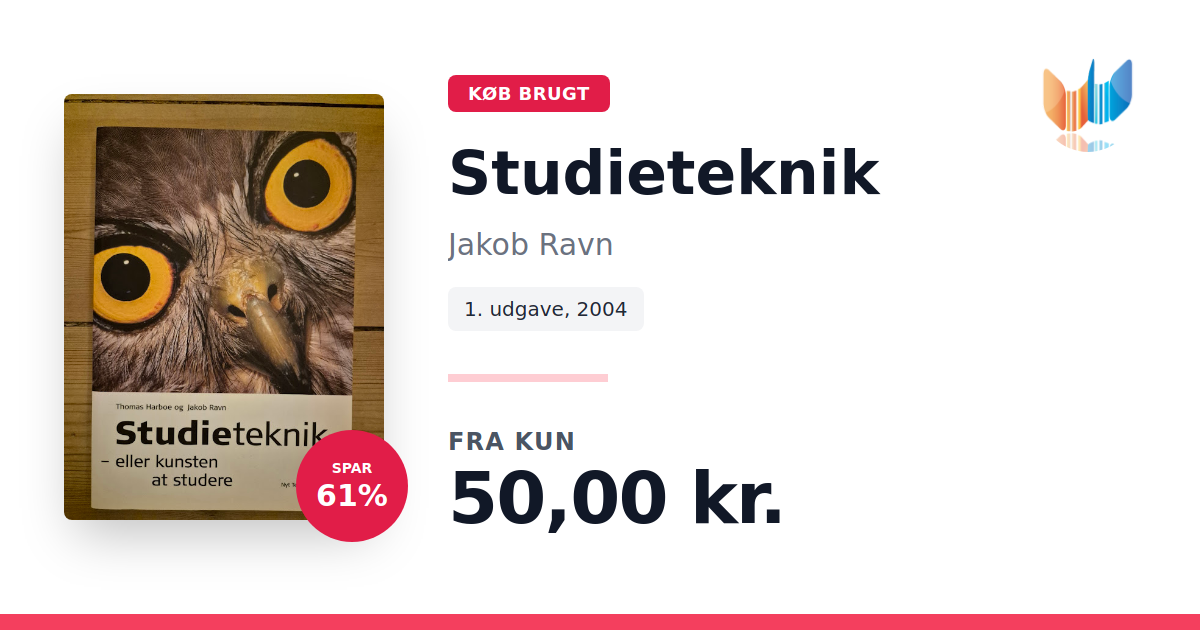 Studieteknik – eller kunsten at studere er en praktisk guide designet til at gøre overgangen til videregående studier lettere og mere overskuelig. Bogen tager udgangspunkt i de udfordringer, mange studerende møder, når de pludselig skal navigere i en mere kompleks studiehverdag, og giver konkrete råd til, hvordan man etablerer gode studievaner fra starten. Med en række velafprøvede teknikker og strategier viser Jakob Ravn, hvordan man effektivt planlægger sin studietid, forbereder sig til eksamen og håndterer gruppearbejde. Bogen giver både inspiration til den studerende, der er på vej ind på en videregående uddannelse, og støtte til den, der ønsker at optimere sin nuværende studiepraksis. Gennem praktiske eksempler og gennemarbejdede studietips bliver læseren guidet til at skabe et solidt fundament for et udbytterigt studieforløb. Studieteknik er derfor et uundværligt redskab for alle, der vil lære kunsten at studere på en systematisk og reflekteret måde.