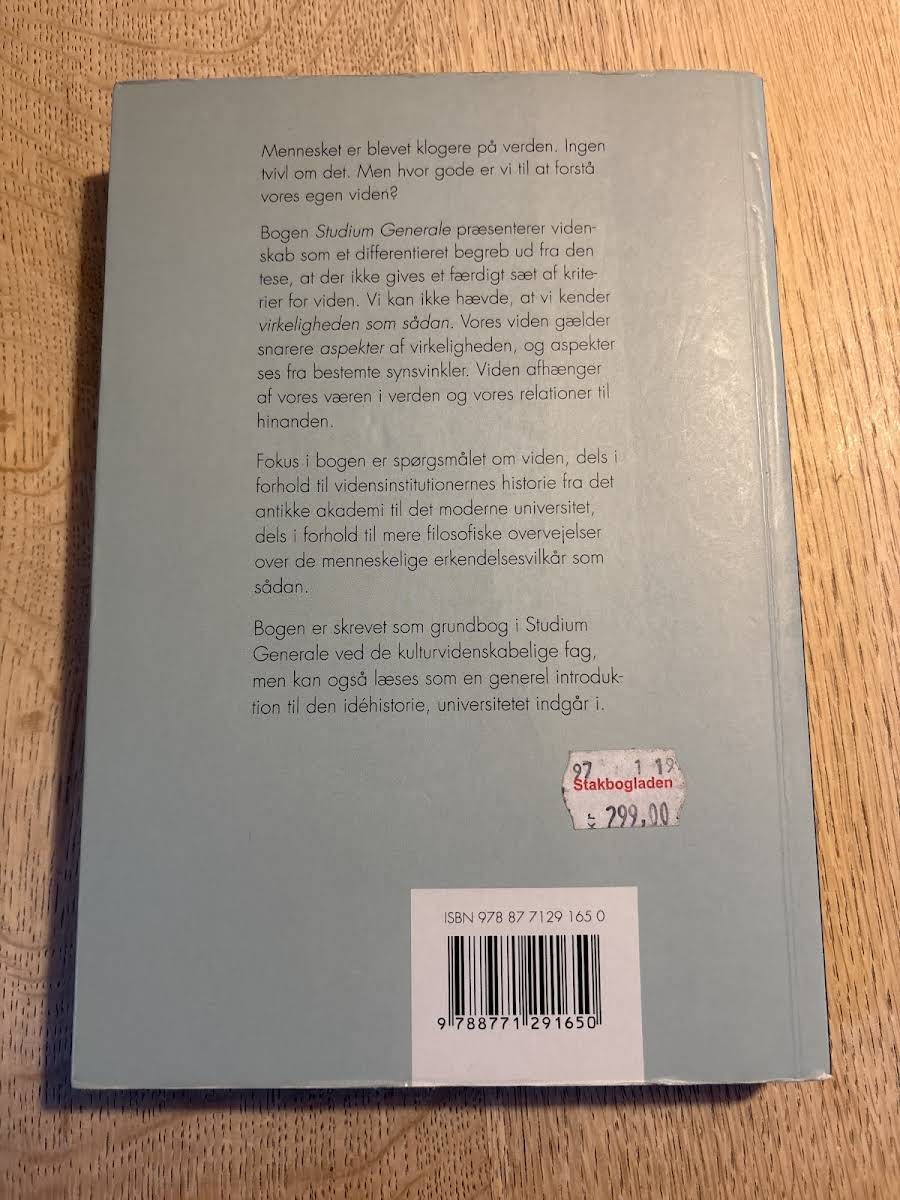 "Studium Generale" er en tankevækkende undersøgelse af, hvordan vi tilgår og forstår viden. Lars Albinus stiller skarpt på, at vores erkendelse af verden ikke giver et fuldstændigt billede, men snarere skildrer forskellige aspekter afhængigt af vores relationer og kontekst. Bogen belyser, hvordan vidensinstitutionerne – fra det antikke akademi til det moderne universitet – har formet vores måde at tænke på. Gennem en rejse i idéhistorien og humanistisk videnskabsteori reflekteres over, hvordan vi forstår virkeligheden ud fra bestemte perspektiver og betingelser. Som grundbog for Studium Generale ved kulturelle og humanistiske fag henvender bogen sig til alle, der ønsker en dybere forståelse af, hvordan videnskab og viden er konstitueret. Med sit skarpe blik på erkendelsens begrænsninger byder bogen på en inspirerende indgang til de komplekse forhold mellem menneskelig erfaring og den verden, vi forsøger at forstå.