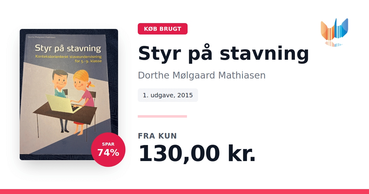 Lige nu kan du købe "Styr på stavning" af Dorthe Mølgaard Mathiasen til kun 130,00 kr. Du sparer hele 74% af nyprisen! Bogen du ser her er brugt, og i god stand. Vi har i øjeblikket kun et enkelt eksemplar til salg af "Styr på stavning", så slå til mens du kan!