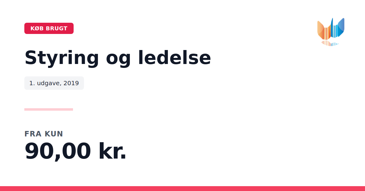 Lige nu kan du købe "Styring og ledelse" til kun 90,00 kr. Du sparer hele 73% af nyprisen! Bogen du ser her er brugt, og i perfekt stand. Vi har i øjeblikket kun et enkelt eksemplar til salg af "Styring og ledelse", så slå til mens du kan!