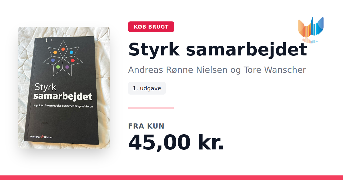 Lige nu kan du købe "Styrk samarbejdet" af Andreas Rønne Nielsen og Tore Wanscher til kun 45,00 kr. Bogen du ser her er brugt, og i god stand. Vi har i øjeblikket kun et enkelt eksemplar til salg af "Styrk samarbejdet", så slå til mens du kan!