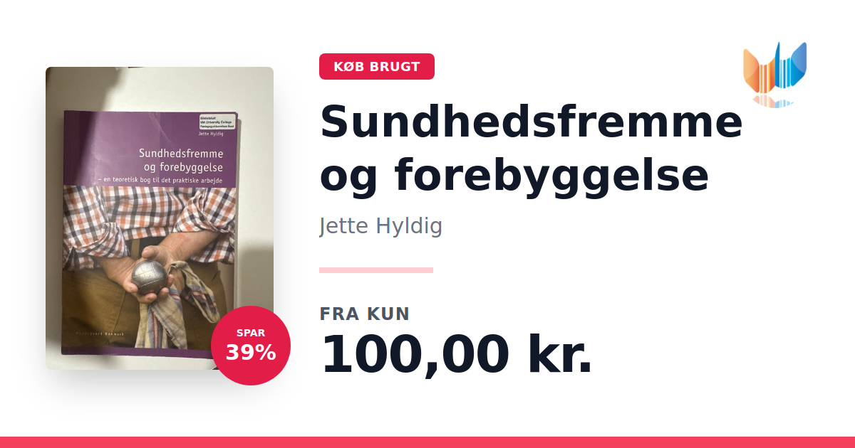Sundhedsfremme og forebyggelse - en teoretisk bog til det praktiske arbejde er skrevet af Jette Hyldig og henvender sig til sundhedsprofessionelle, der ønsker et solidt teoretisk fundament for deres daglige indsats. Med udgangspunkt i både historiske og moderne perspektiver belyses, hvordan sundhedsfremme og forebyggelse er blevet en central opgave i sundhedssektoren. Bogen tager afsæt i de officielle mål for arbejdsmarkedsuddannelsen Forebyggelse og sundhedsfremme og præsenterer forskellige sundhedssyn. Disse teoretiske overvejelser samles i bogens eget holistiske sundhedssyn, som favner både individ og samfund. Herefter uddybes fire nøglebegreber, der danner rygraden i sundhedsfremmende arbejde: ressourcetænkning, empowerment, handlekompetence og livskvalitet. For hvert begreb forklares, hvordan det kan anvendes i praksis for at styrke borgerens egne ressourcer. I bogens praktiske afsnit får læseren adgang til en række konkrete redskaber og metoder til at planlægge, gennemføre og evaluere forebyggende og sundhedsfremmende indsatser. Eksempler og øvelser guider trin for trin fra idé til handling. Gennem hele bogen understreges, at målet med sundhedsfremme er at støtte den enkelte i at tage ansvar for eget helbred og trivsel. Ved at give borgeren redskaber og indsigt skabes grundlag for vedvarende positive forandringer i hverdagen.