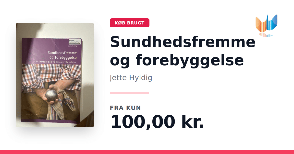 Lige nu kan du købe "Sundhedsfremme og forebyggelse" af Jette Hyldig til kun 100,00 kr. Bogen du ser her er brugt, og i god stand. Vi har i øjeblikket kun et enkelt eksemplar til salg af "Sundhedsfremme og forebyggelse", så slå til mens du kan!