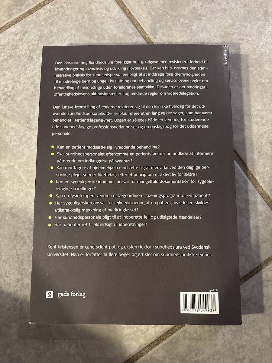 Med "Sundhedsjura" præsenterer Kent Kristensen et solidt teoretisk og praktisk fundament inden for de retlige normer, som gælder på sundhedsområdet. Bogen giver læseren en grundig indsigt i de centrale aspekter af sundhedsjura, herunder patienters retsstilling, sundhedspersoners ansvar samt myndighedernes tilsyn. I takt med de seneste lovændringer og udviklingen i retspraksis er bogen revideret og opdateret, så den afspejler den nyeste administrative praksis og juridiske fortolkninger. "Sundhedsjura" formidler et overskueligt overblik over emnet og gør det muligt at identificere og forstå relevante retlige problemstillinger i en række forskellige kontekster.