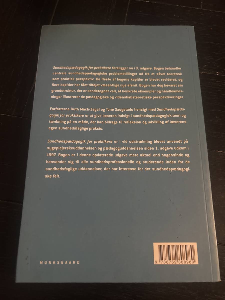 Sundhedspædagogik for praktikere er en central ressource, der belyser aktuelle sundhedspædagogiske problemstillinger ud fra både et teoretisk og praktisk perspektiv. Med indsigt fra Ruth Mach-Zagal og Tone Saugstad Gabrielsen formidles en dybdegående og reflekterende tilgang til emnet, som understøtter både undervisning og professionel praksis. Bogen skaber rum for refleksion og udvikling af den enkelte sundhedsprofessionelles tilgang til sundhedspædagogik. Med sit fokus på at formidle centrale teorier og metoder retter den sig mod studerende og praktikere inden for det sundhedsfaglige område, som søger at styrke deres pædagogiske kompetencer gennem en velafbalanceret kombination af teori og praksis.