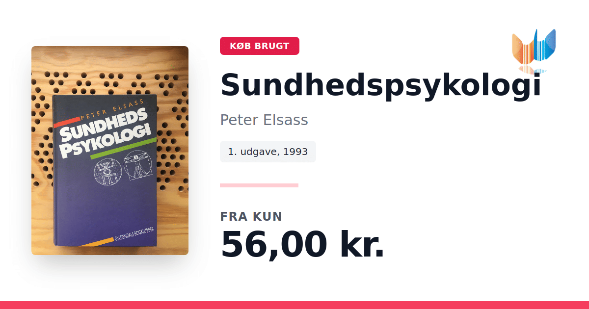 Lige nu kan du købe "Sundhedspsykologi" af Peter Elsass til kun 56,00 kr. Bogen du ser her er brugt, og i god stand. Vi har i øjeblikket 2 eksemplarer til salg af "Sundhedspsykologi", så husk at se de forskellige udgaver.