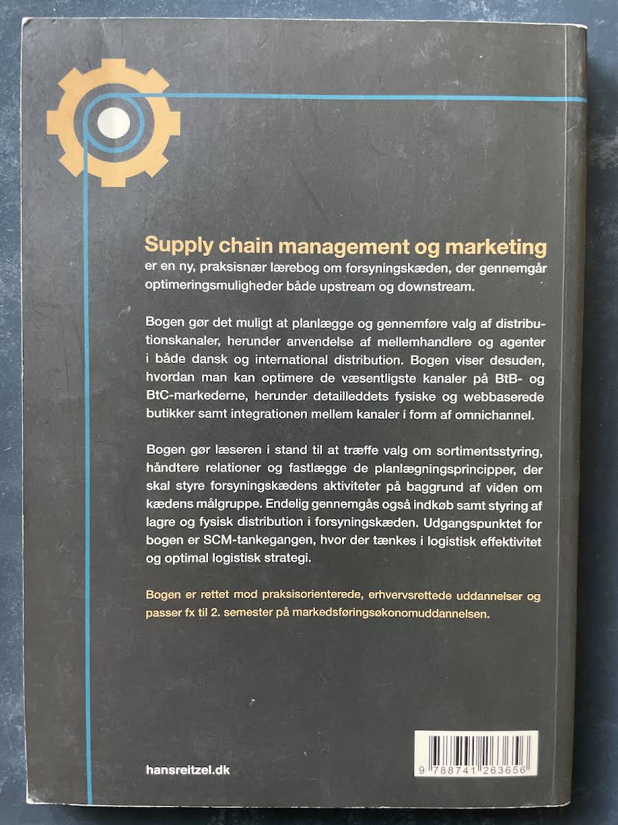 "Supply chain management og marketing" er en grundlæggende lærebog, der sætter fokus på optimering af forsyningskædens processer både upstream og downstream. Gennem hele bogen introduceres læseren for essentielle værktøjer, der gør det muligt at træffe kvalificerede valg af distributionskanaler, mellemhandlere og agenter i både dansk og international distribution. Bogen beskæftiger sig desuden med, hvordan de centrale strategier inden for BtB- og BtC-markederne kan optimeres, herunder sortimentsstyring og håndtering af relationer. Med udgangspunkt i SCM-tilgangen opnår læseren en solid forståelse for planlægningsprincipperne, der styrer forsyningskædens aktiviteter. "Supply chain management og marketing" er ideel for praksisorienterede erhvervsrettede uddannelser, herunder særligt 2. semester på markedsføringsøkonomuddannelsen.