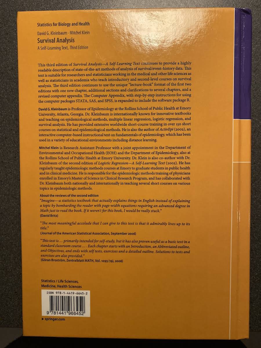 • Survival Analysis, David G. Kleinbaum, Mitchel Klein, 9781441966452
