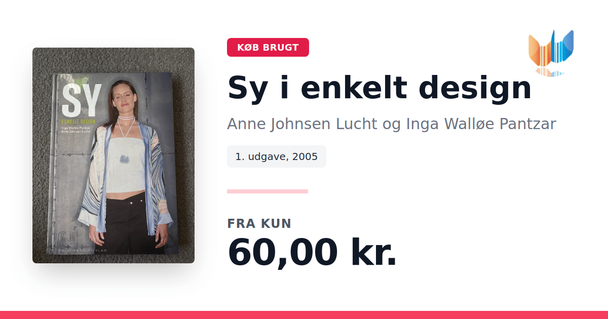 Lige nu kan du købe "Sy i enkelt design" af Anne Johnsen Lucht og Inga Walløe Pantzar til kun 60,00 kr. Bogen du ser her er brugt, og i god stand. Vi har i øjeblikket kun et enkelt eksemplar til salg af "Sy i enkelt design", så slå til mens du kan!