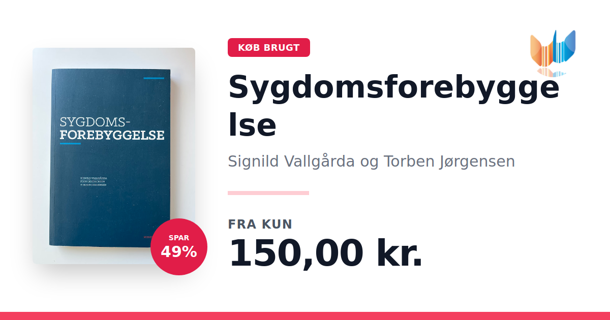Sygdomsforebyggelse tilbyder et grundigt indblik i, hvordan man planlægger, gennemfører og evaluerer tiltag med fokus på at forebygge sygdomme og skader. Bogen præsenterer basale begreber og teorier inden for forebyggelsesområdet samt redskaber, der effektivt kan bruges til at analysere befolkningens behov for sundhedsfremmende initiativer. Med udgangspunkt i en historisk gennemgang af sygdomsmønstre og forebyggelsesstrategier i Danmark belyses både de praktiske og etiske aspekter ved det forebyggende arbejde. Værket, skrevet af Signild Vallgårda, Torben Jørgensen og Finn Diderichsen, henvender sig til studerende inden for folkesundhedsvidenskab, sundhedsfaglige uddannelser og praktikere, der arbejder med sygdomsforebyggelse.