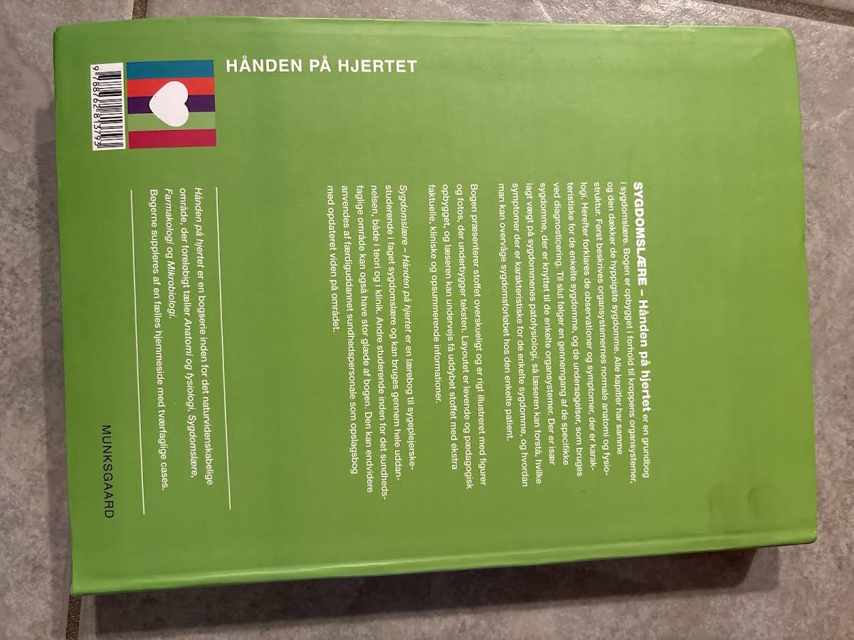 Sygdomslære - hånden på hjertet, 2. udgave, er en grundlæggende lærebog, der giver et solidt indblik i sygdomslære. Bogen kombinerer den traditionelle tekst med en digital i-bog, der beriger læseoplevelsen med øvelser, animationer, quizzer, en notesbog og andet understøttende materiale. Den digitale udgave supplerer tekst og illustrationer, hvilket gør stoffet let at tilegne sig. Stoffet er struktureret efter kroppens organsystemer og omfatter de mest udbredte sygdomme. Hvert kapitel indledes med en gennemgang af organsystemernes normale anatomi og fysiologi, hvorefter observationer, typiske symptomer og undersøgelsesmetoder beskrives. Der lægges særlig vægt på patofysiologien, så læseren opnår en dybere forståelse af, hvordan symptomer opstår og monitoreres over tid. Med rige illustrationer, figurer og fotos præsenteres stoffet overskueligt og pædagogisk, hvilket gør bogen ideel for sygeplejerskestuderende samt andre sundhedsfaglige, der ønsker en opdateret og tydelig introduktion til sygdomslære.