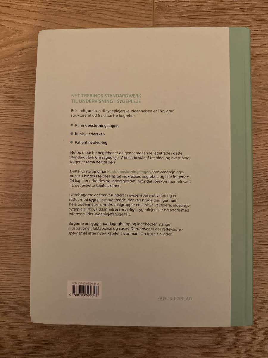 FADL’s Forlag udgiver nu "Sygepleje- Klinisk beslutningstagen", det første bind i et trebindsværk, der er tilpasset den nyeste sygeplejerskeuddannelse. Bogen sætter klinisk beslutningstagning i centrum og hjælper læseren med at finde ud af, hvilken sygepleje der er bedst gavnlig for den enkelte patient i forskellige situationer. Bindet fokuserer på teoretiske og forskningsbaserede aspekter af vigtige sygeplejefaglige områder såsom respiration, mundpleje, smerter, sår, palliativ pleje og immobilitet. Med 75 kapitler, der hver især spænder over 20–25 sider og indeholder resuméer, faktabokse, cases samt referencer til de øvrige bind, får læseren en grundig og nuanceret introduktion til emnet. Værket er skabt i samarbejde med 110 specialiserede forfattere og er både fagligt opdateret og pædagogisk designet til at understøtte både teoretisk og klinisk læring. "Sygepleje- Klinisk beslutningstagen" er et uvurderligt redskab for sygeplejestuderende, sygeplejersker og kliniske vejledere, der ønsker at opnå en dybdegående sygeplejefaglig indsigt.