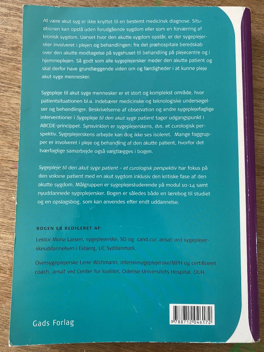 "Sygepleje til den akut syge patient – et curologisk perspektiv" giver et omfattende indblik i håndteringen af akutte tilstande, hvor både pludselige sygdomme og forværringer af kroniske lidelser behandles. Med udgangspunkt i ABCDE-princippet og et curologisk perspektiv på sygeplejen understreges vigtigheden af at kunne agere hurtigt og koordineret. Mona Larsen formidler her essentielle strategier og interventioner, der støtter sygeplejerskens rolle i den multidisciplinære behandling af voksne patienter i den kritiske fase. Bogen henvender sig særligt til sygeplejestuderende og nyuddannede sygeplejersker, men fungerer også som et praktisk opslagsværk i det videre professionelle virke. Den indeholder en grundig redegørelse for de vigtigste aspekter ved akut sygepleje, med fokus på den curologiske tilgang, der forener medicinske og kirurgiske elementer i patientplejen. Med sine 277 sider byder bogen på et solidt fagligt fundament, der styrker evnen til at træffe de rigtige beslutninger i de mest krævende situationer.