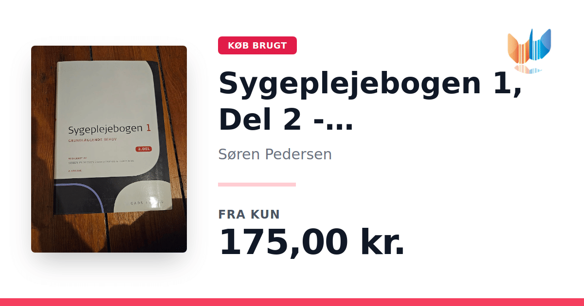 Lige nu kan du købe "Sygeplejebogen 1, Del 2 - Grundlæggende behov" af Søren Pedersen til kun 175,00 kr. Bogen du ser her er brugt, og i perfekt stand. Vi har i øjeblikket 4 eksemplarer til salg af "Sygeplejebogen", så husk at se de forskellige udgaver.