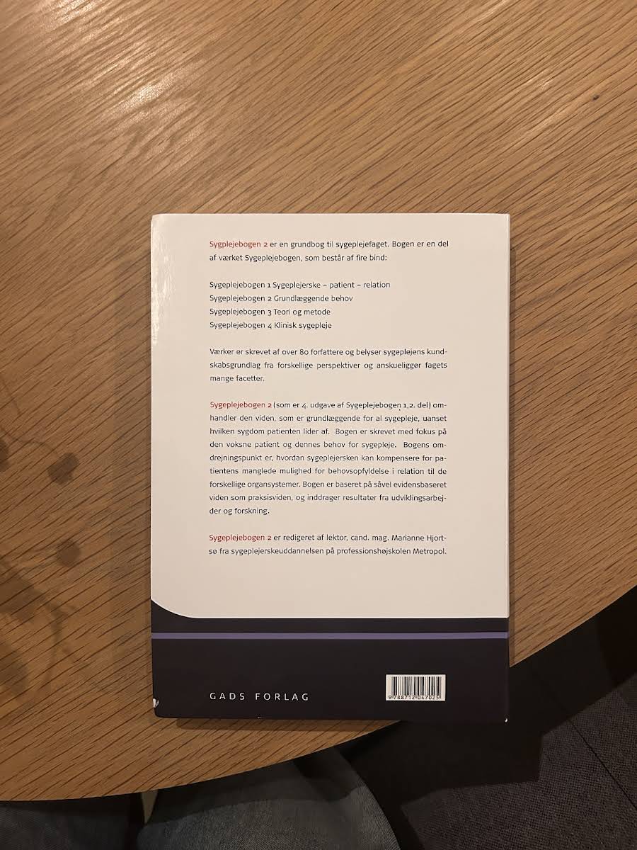 Sygeplejebogen 2 – Grundlæggende behov udgives nu i sin 4. udgave og er et redskab, der med fokus på de grundlæggende behov i sygeplejen understøtter de studerendes evne til at observere, reflektere og handle på kliniske udfordringer. Bogen er struktureret i overskuelige kapitler, der hver især bidrager til at styrke den studerendes faglige forståelse og observationskompetence. Indholdet er nøje tilpasset de læringsudbytter, som Studieordningen 2008 fastsætter for de første moduler på sygeplejerskeuddannelsen. Under redaktionen af Marianne Hjortsø kombineres erfaring fra klinisk praksis, pædagogik og forskning for at give læseren et solidt fundament i de sygeplejefaglige problemstillinger. Med en velkendt og genkendelig kapitelopbygning byder Sygeplejebogen 2 på et redskab, der på en overskuelig måde guider den studerende gennem de centrale emner i sygeplejefaget og understøtter den faglige og kliniske udvikling.