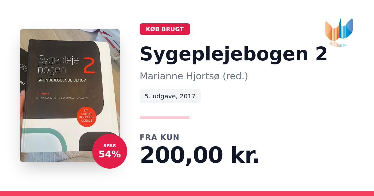 Sygeplejebogen 2 understreger sygeplejerskens evne til at observere og handle klinisk målrettet i forhold til patientens basale behov. Bogen åbner med et indledende kapitel, der giver en grundig introduktion til den systematiske sygeplejeproces, som danser basis for dataindsamling, -analyse og intervention. Herefter dykker teksten ned i en række centrale områder, hvor der blandt andet sættes fokus på respiration, kredsløb, udskillelser samt temperaturregulering. Kapitlerne omfatter også ernæring, væskebehandling, kvalme og opkast, og de videre aspekter af patientpleje, som søvn, personlig hygiejne, immobilitet, smerter, seksualitet og infektionsforebyggelse. Undervejs er samarbejdet med både patienten og de pårørende integreret som en væsentlig del af den kliniske praksis. Bogens afsluttende kapitel runder værket af ved at behandle døden – med særlig fokus på sygeplejerskens observationer og interventioner over for den døende patient samt den nære dialog med pårørende.