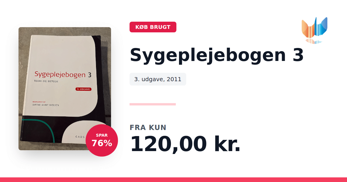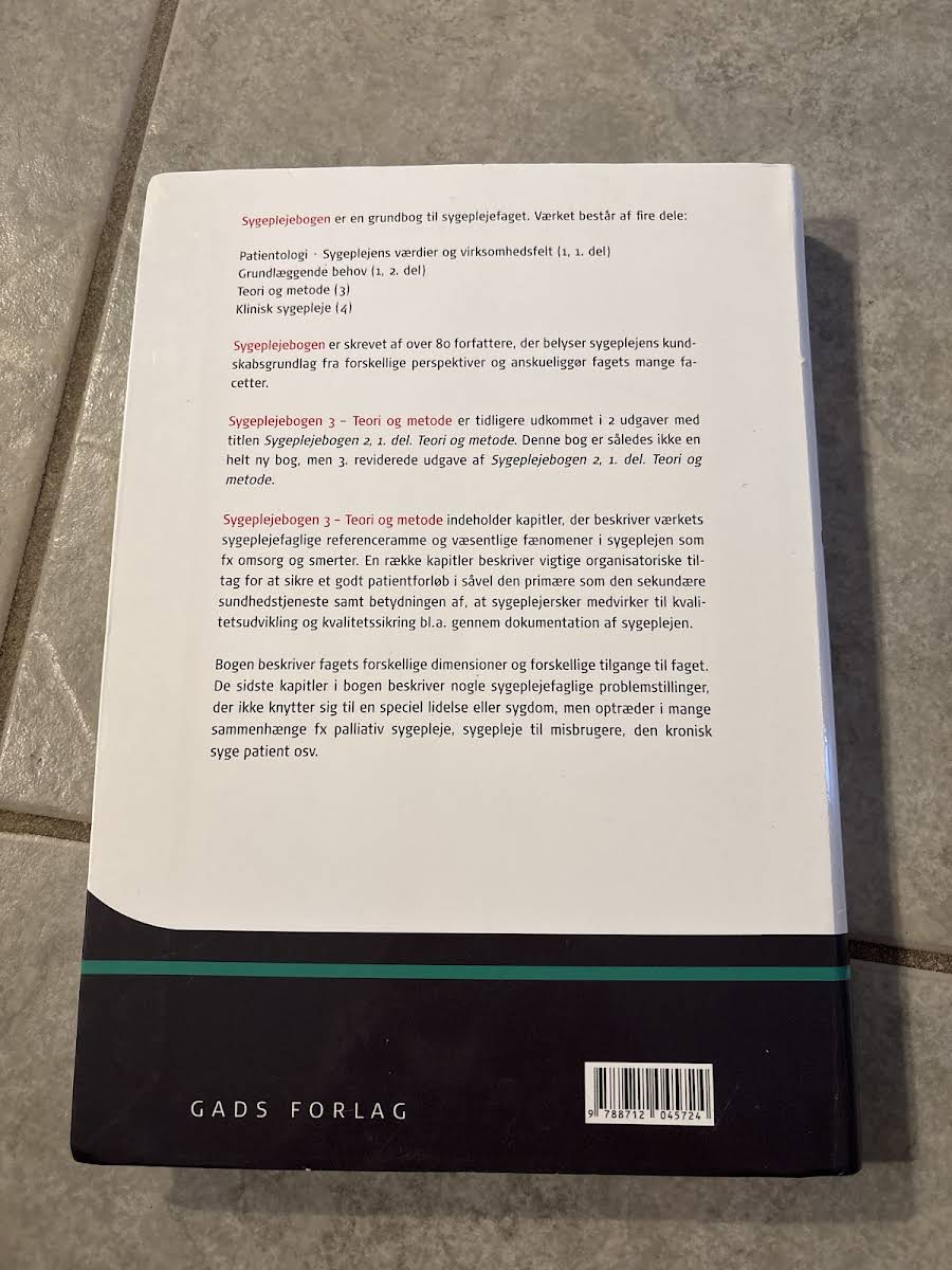 Sygeplejebogen 3 afløser den tidligere udgave, SYGEPLEJEBOGEN 2.1, og udgør en grundbog til sygeplejefaget med et bredt perspektiv på fagets kundskabsgrundlag. Bogen, redigeret af Birthe Kamp Nielsen, samler bidrag fra over 80 forfattere, som tilsammen kaster lys over de mange facetter af sygeplejen. I dette værk er der særligt fokus på de teoretiske og metodiske aspekter, som udgør den sygeplejefaglige referenceramme. En række kapitler behandler centrale emner som dokumentation, sygeplejeudvikling, samt specifikke områder inden for væskebehandling, sårbehandling, smertebehandling og både præ- og postoperativ sygepleje. 3. udgave byder desuden på nye kapitler, der dykker ned i emner som Kropskundskabing, Det accelererede patientforløb, Den kronisk syge patient samt Sygepleje til misbrugere af alkohol og af stoffer. Denne udvidede tilgang sikrer et opdateret og nuanceret overblik over de centrale problemstillinger i nutidens sygepleje.