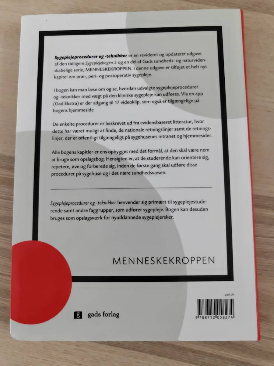 • Sygeplejeprocedurer og teknikker, BB, Pia Lysdal Veje, Red: Karen Margrethe Maglekær, 9788712058274