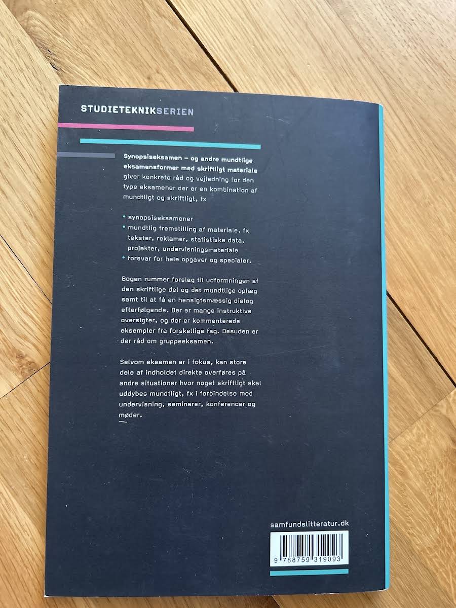 "Synopsiseksamen og andre mundtlige eksamensformer med skriftligt materiale" byder på konkrete råd og vejledning til eksamensformer, der kombinerer mundtlig og skriftlig præsentation. Bogen fokuserer på, hvordan du bedst forbereder og gennemfører synopsiseksamener samt andre eksamener, hvor du både skal fremstille et skriftligt materiale og levere en mundtlig præsentation. Forfatterne Helle Hvass og Peter Stray Jørgensen giver praktiske forslag til udformningen af den skriftlige del og til opbygningen af det mundtlige oplæg. Gennem overskuelige oversigter og kommenterede eksempler fra forskellige fagområder fremhæver de, hvordan man skaber en konstruktiv dialog gennem hele eksamensforløbet – også med henblik på gruppeeksamen.