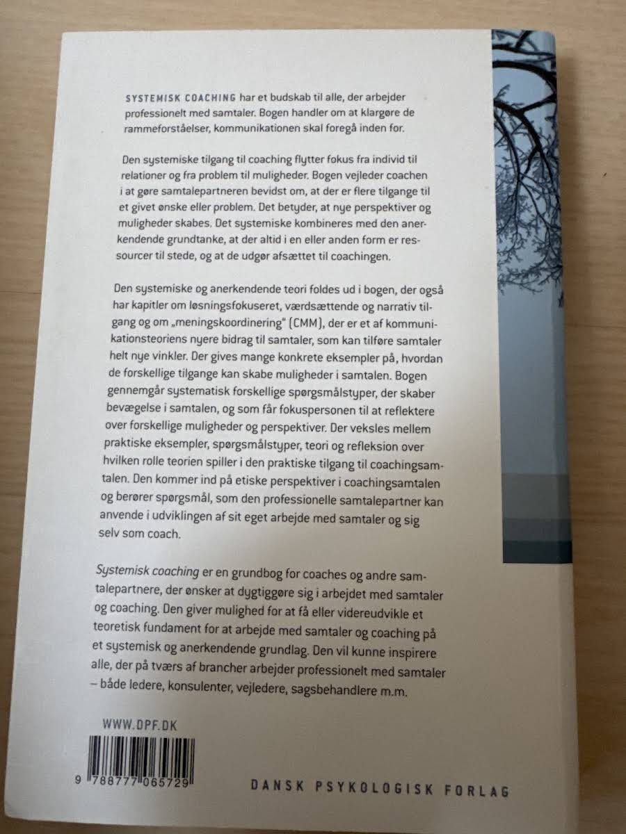 "Systemisk coaching – En grundbog" præsenterer en struktureret tilgang til coaching, der bygger på, at samtaler udvikles bedst inden for klare rammer og forståelser. Med udgangspunkt i den systemiske metode flyttes fokus fra individets udfordringer til relationernes potentiale, så nye perspektiver og muligheder træder frem. Bogen understreger, at coachens rolle er at gøre samtaleparten bevidst om de mange tilgange, der åbner for alternative løsninger. Gennem en kombination af systemisk og anerkendende teori illustreres, hvordan ressourcerne allerede er til stede, og hvordan de kan udnyttes i praksis. Med konkrete eksempler og en systematisk gennemgang af forskellige spørgsmålstyper får læseren redskaber til at skabe bevægelse og refleksion i samtalen. Desuden introduceres elementer fra løsningsfokuseret, værdsættende og narrativ coaching samt "meningskoordinering" (CMM – Coordinated Management of Meaning) som nyskabende tiltag i kommunikationsteorien. Som en grundbog for coachere og andre professionelle, der arbejder med samtaler, tilbyder denne bog inspirerende indsigter og praktiske redskaber til at udvikle en dybere forståelse af samtalens mange facetter.